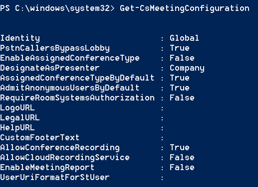 7. Test with a Get-CsMeetingConfiguration to show settings.