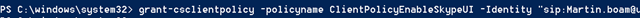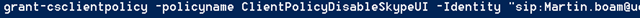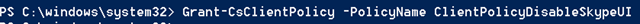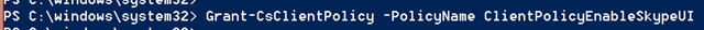 Grant-CsClientPolicy -PolicyName ClientPolicyDisableSkypeUI