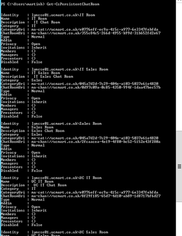 Get-CsPersistentChatRoom -PersistentChatPoolFqdn "lyncse02.ucmart.co.uk"