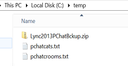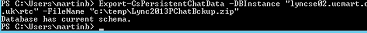 Export-CsPersistentChatData -DBInstance "lyncse02.ucmart.co.uk\rtc" -FileName "c:\temp\Lync2013PChatBckup.zip"