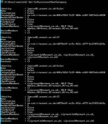 Get-CsPersistentChatCategory -PersistentChatPoolFqdn "lyncse02.ucmart.co.uk"
