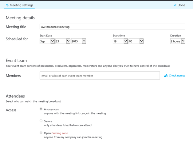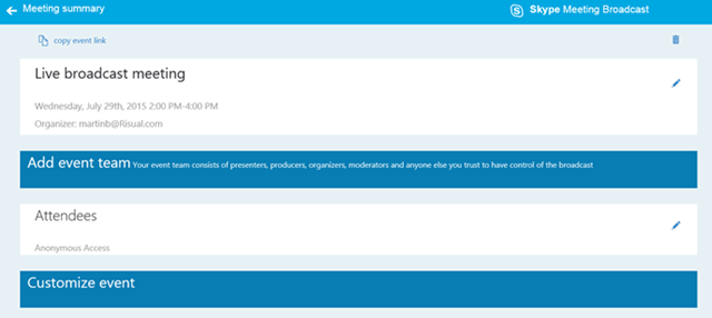 Event Team Broadcast Meeting using SfB Client