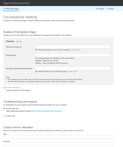 - When selecting bottom panel for Yammer integration, it’s important to remind broadcast attendees to scroll the browser window down.