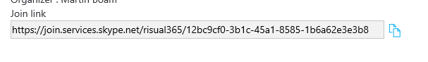 Still seems to be manual copy and paste job into Outlook to send out to your attendees or posting the link on a web page invite or twitter etc.