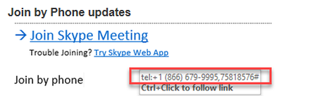 Now creates a hyperlinks including the dial in numbers and a pause and then followed by the Conference ID and then a pound sign ! nice!