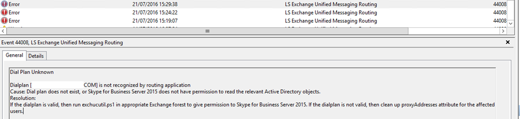 I was recently setting up Exchange UM with SfB and came across this error when trying to call the subscriber access number. I found this in the event log of the Skype for Business Front End Server.