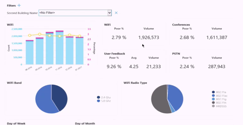 In house Microsoft and SfB Media team used CQD to help resolves issues as more and more users are using and adopting WiFi over wired connections. Buildings not designed with wireless and data. Placing WiFi access points is key! So viewing where the issue were and drilling down into the data was key.