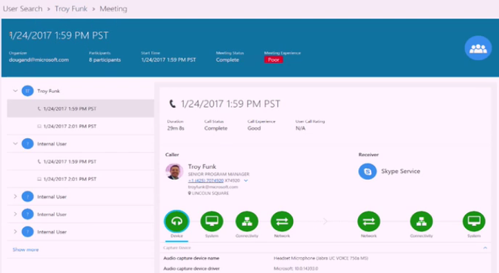 Help helpdesk admins dive into calls and see what happens could be using on-board speakers and mic or could be network connected on such as Wi-Fi. Issue with me or someone else.
