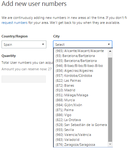 I can now select Spain and they have a great selection of cities available for numbers which is great.