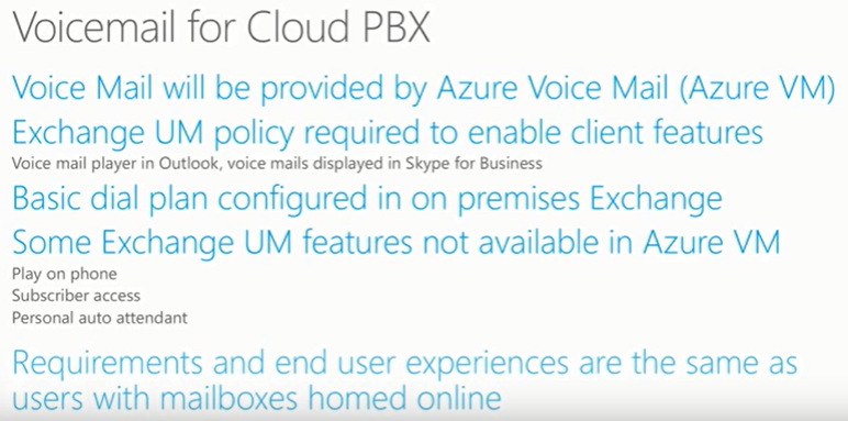 But now Azure Voicemail can leverage your on premises Exchange mailbox with Cloud PBX users. This is great to see this as it allows more flexibility. So now you have mailbox on premises or in Exchange Online ![]()
