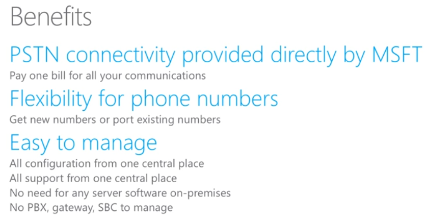 Cloud PBX with PSTN calling is from Microsoft, one service, one bill, one provider