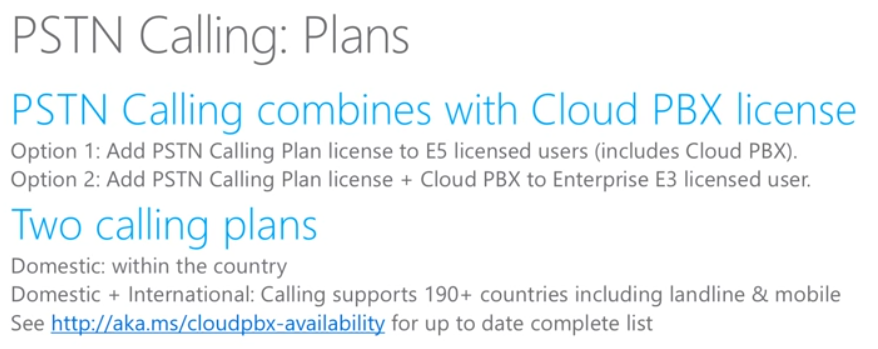 Users require a PSTN calling plan and there are two available in
