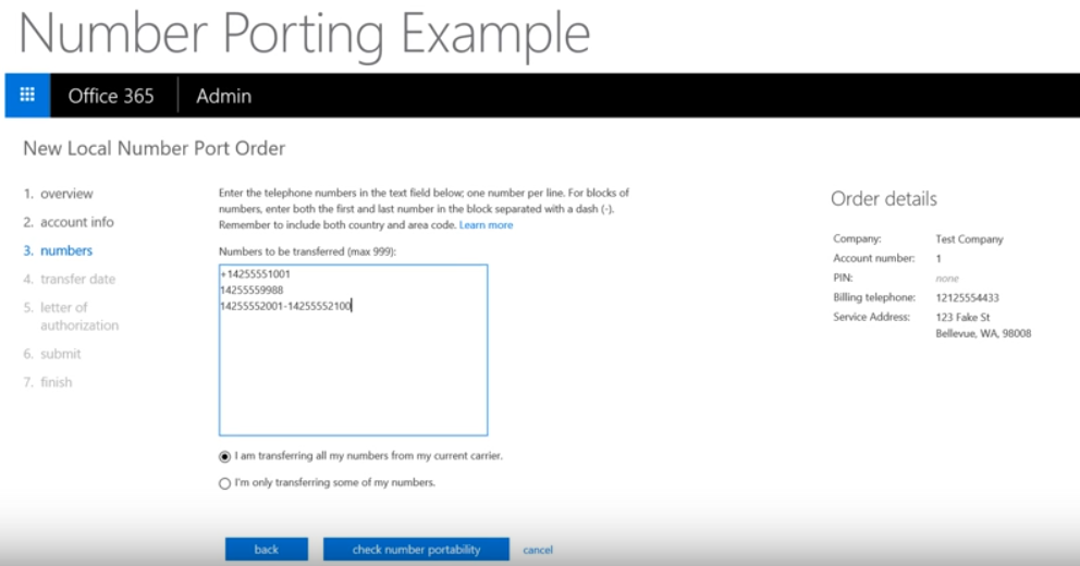 Transfer phone numbers to Skype for Business Online