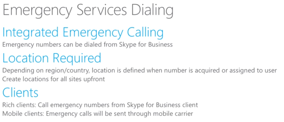 - If users has no power, network or internet SfB wont be able to call emergency services