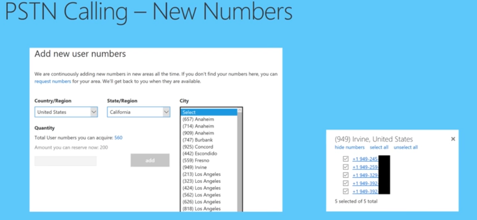 If you want to have new numbers its simple process and search by country state region. You can acquire more numbers than licences and theres a formula for this below.