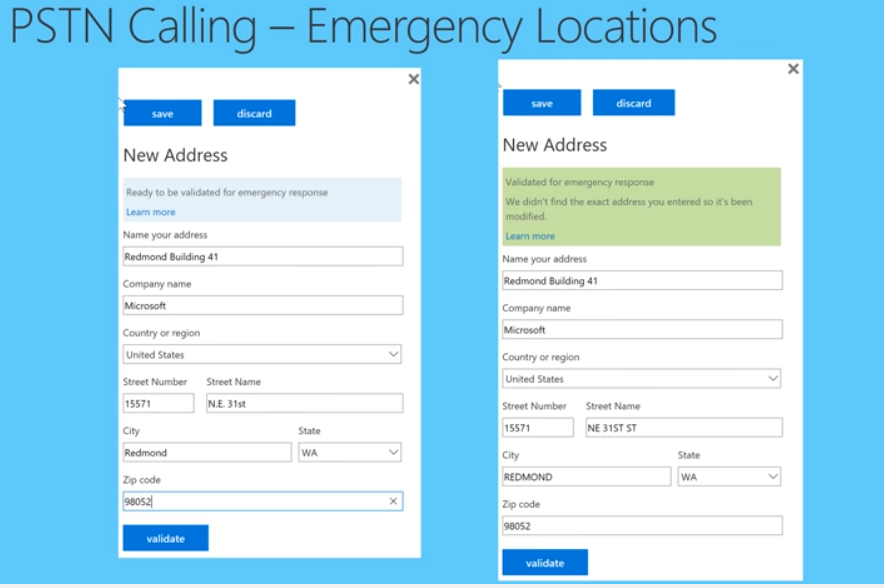 - Please note how Emergency calling is different with Cloud PBX with PSTN Calling due to the nature of SfB and its mobile use.