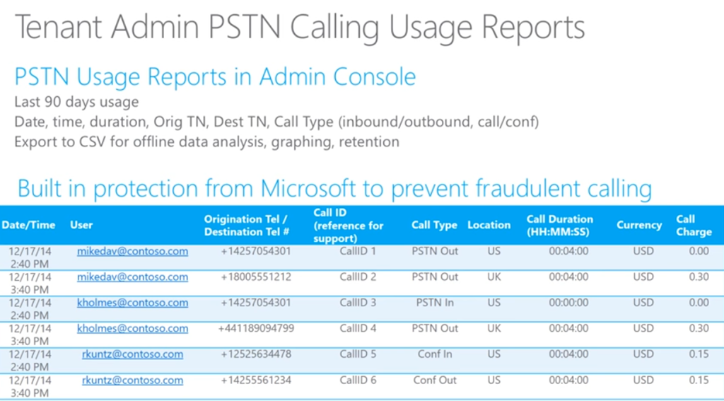 PSTN Calling Usage Reports