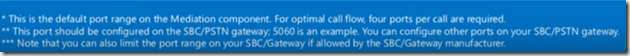 Default port range marked by * above this the default port range on mediation 4 ports required per call. These can be adjusted.