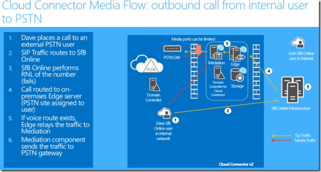 Dave is on internal network, he signs into Office 365, now he makes external pstn call, when the call reaches Office 365 first it does reverse number lookup to check if its a number for a sfb user, its not so the call is routed to Cloud Connector so its routed to Dave sites Edge, then mediation then gateway.