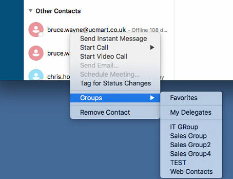 | Users can call and send IMs to the DL and Groups via the Group Contact Card. | |
