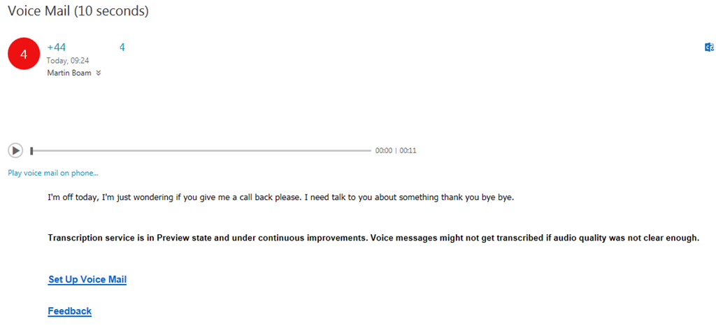 Well this announcement came out of the blue for me but its awesome its here! its a new feature to Azure Voicemail for SfB Online Cloud PBX users but has been available with Exchange UM for a while.