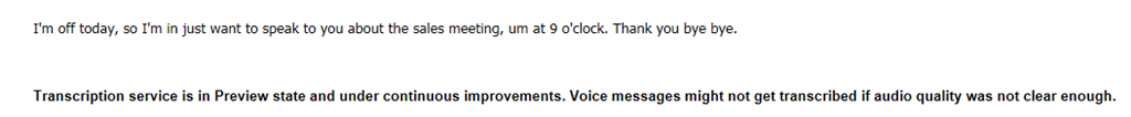 Cloud PBX voicemail doesn’t use Exchange UM as it utilises Azure Voicemail platform. There are currently it seems seven language available for transcribing which I’m sure will grow and grow.
