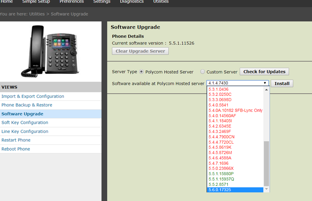 I next checked for updates via the Polycom hosted server, im not using any custom update servers at home yet.