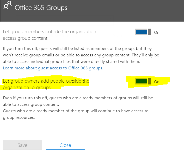 In Office 365 groups: Let group owners add people outside the organization to groups