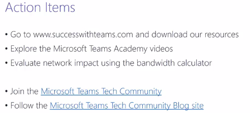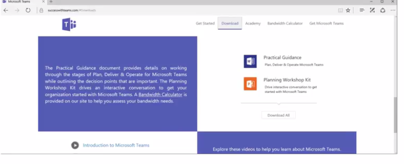 Introduces the Success with Teams website, review practical guidance asset and intros into Academy for Teams and the Bandwidth Calculator.