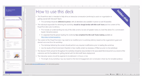 - Planning Workshop for Microsoft Teams – Drive interactive conversation to get started with Microsoft Teams
