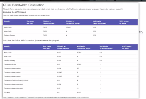Bandwidth Calculator for Microsoft Teams