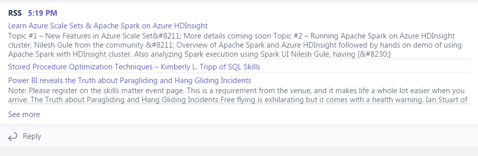 I was looking to see if i could add an RSS feed into a channel using connector and o yes you can.