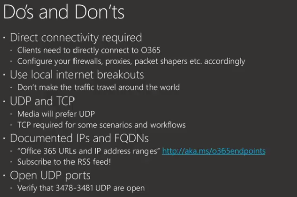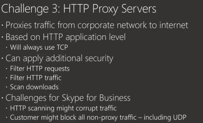 - Bad for Teams and SfB as doesn’t allow UDP only HTTP will always use TCP