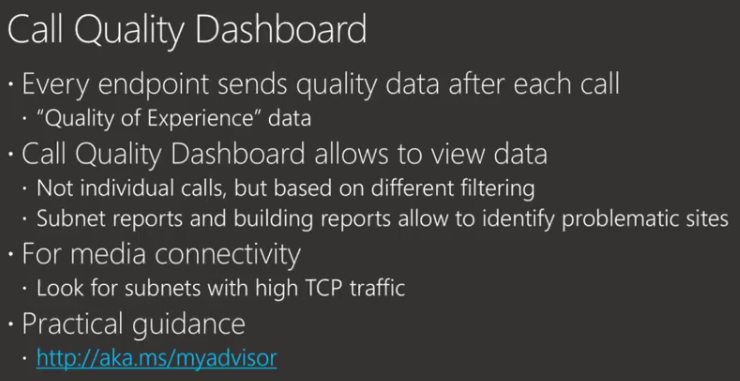 Also CQD Call quality Dashboard, after every call over signalling it logs the call quality experience, IPs, ports,