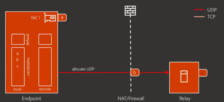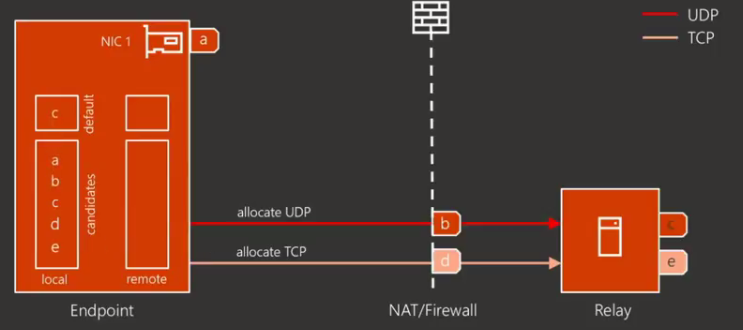 - client sends packet to relay servers and allocates candidates and sends back packet and knows my public ip is this and then client knows this is my public ip and maybe i can accept traffic there