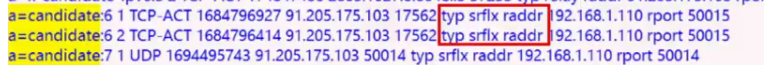 when reproduce problem and you want to see a=candidate sometimes after someone answer it may take 7-10 seconds for this so recommend to leave call running for 20 seconds then disconnect calls so can makes sure final candidates are there.