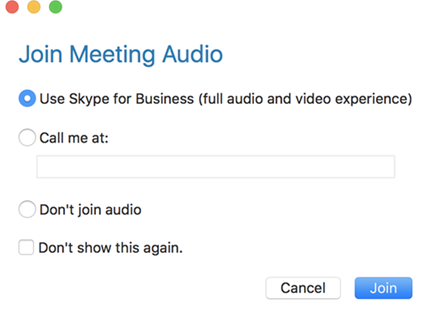 Users can choose to join meetings without joining audio. Its been around in the Windows client for a long long time and i don’t use it heavily but its a very nice feature to have to simply the way you join audio for meetings. More details below from. As with the Windows client you can set your default audio option for joining meetings or have it prompt each time. You can Join via SfB audio and video, be called on your PSTN number (Landline or Mobile) or don’t join audio.