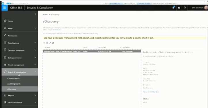 So i thought after this video and as screenshots from the video were pretty poor id have a play around and walkthrough what we watched and learn a bit around eDiscovery as i went.