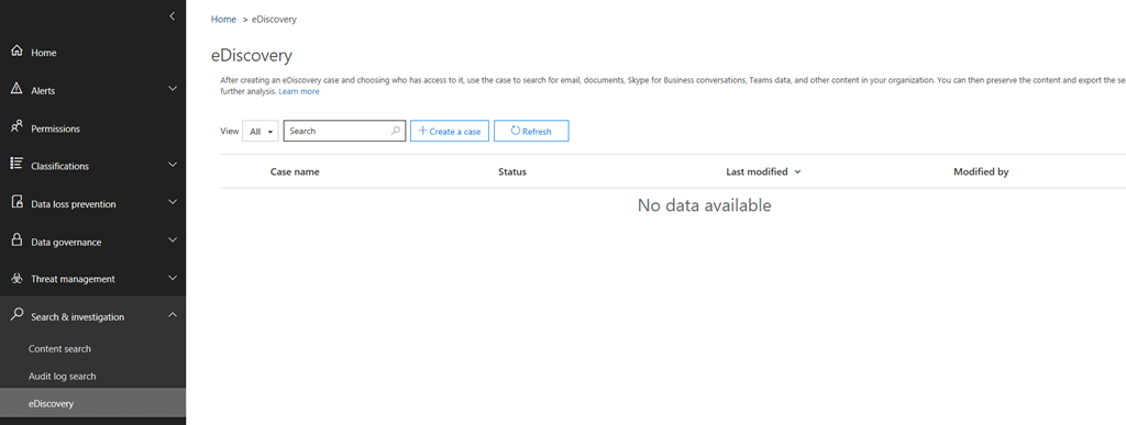 You do have to be Office 365 admin, compliance admin which you need to assign to view and manage e-discovery cases.