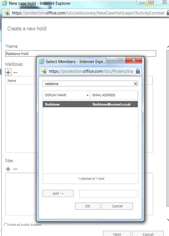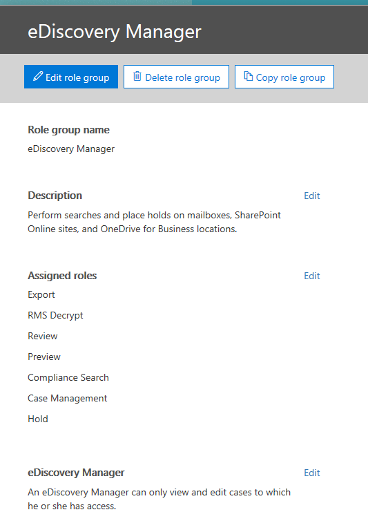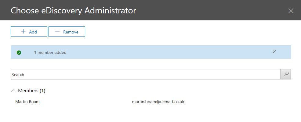 Edit eDiscovery Administrator and assign myself and thank you ![]()
