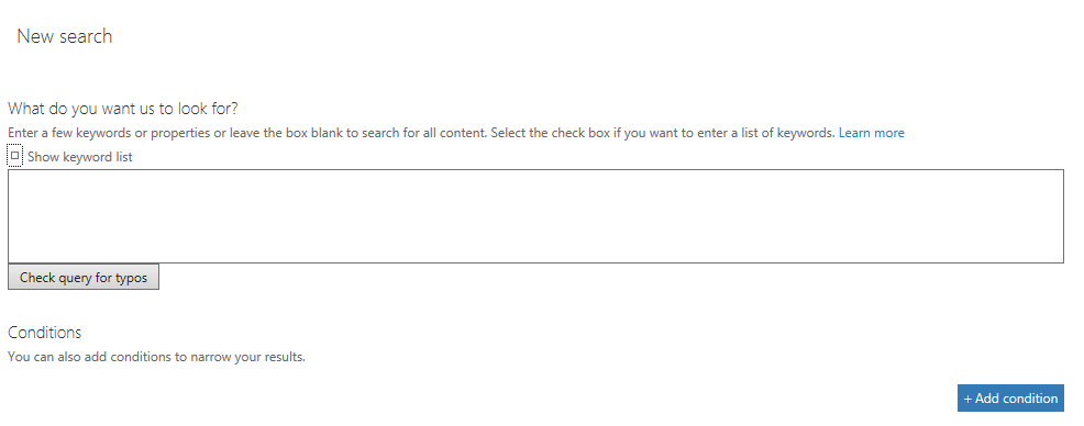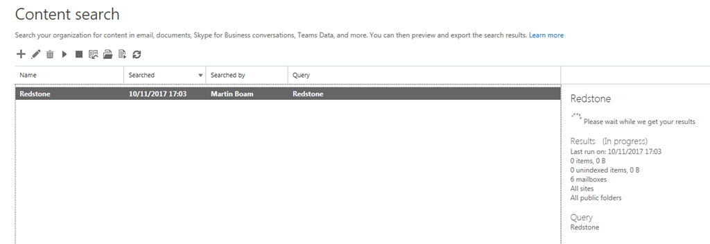 thought id have a play with this as well, seems to already be part of ediscovery case but you can see here you can just do the search only for content.