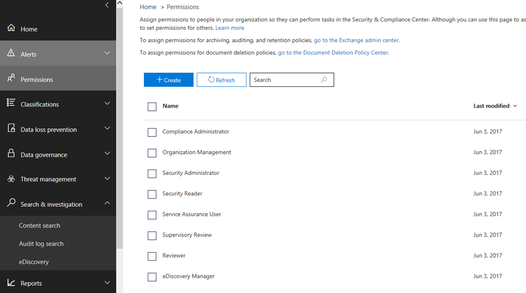 Over in Security and Compliance centre