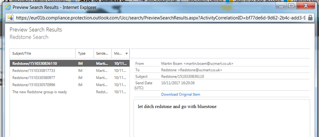 Compliance content search as well for Redstone