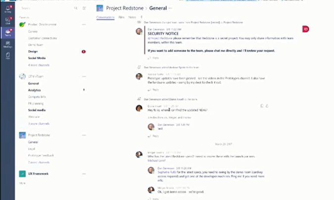 We switch over to teams and we can see there is a Team for Redstone