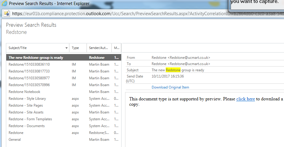 Lets go back to eDiscovery and try and preview results