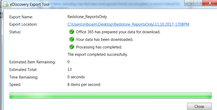 Exports – You can export the results as PST or multiple
