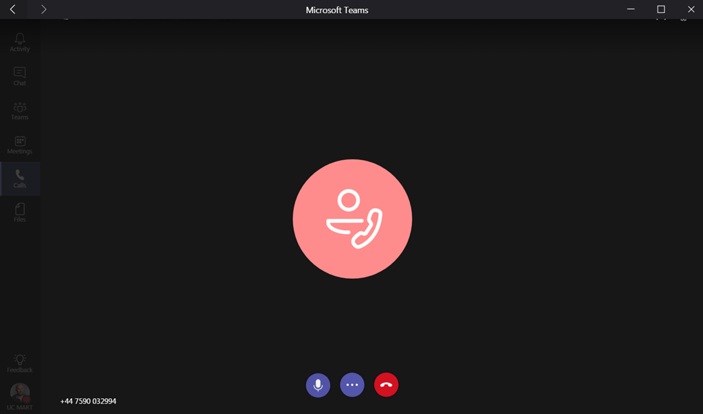 and here its ringing in teams, again i could not my Windows 7 pc with Teams to get an incoming call but on Windows 10 machine it worked fine.