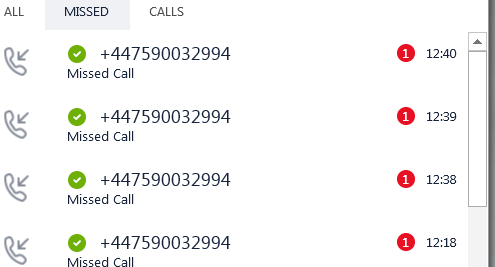 I also notice the missed calls are showing in SfB client as well