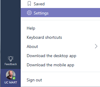 Lets hide over to setting in the Teams client and check