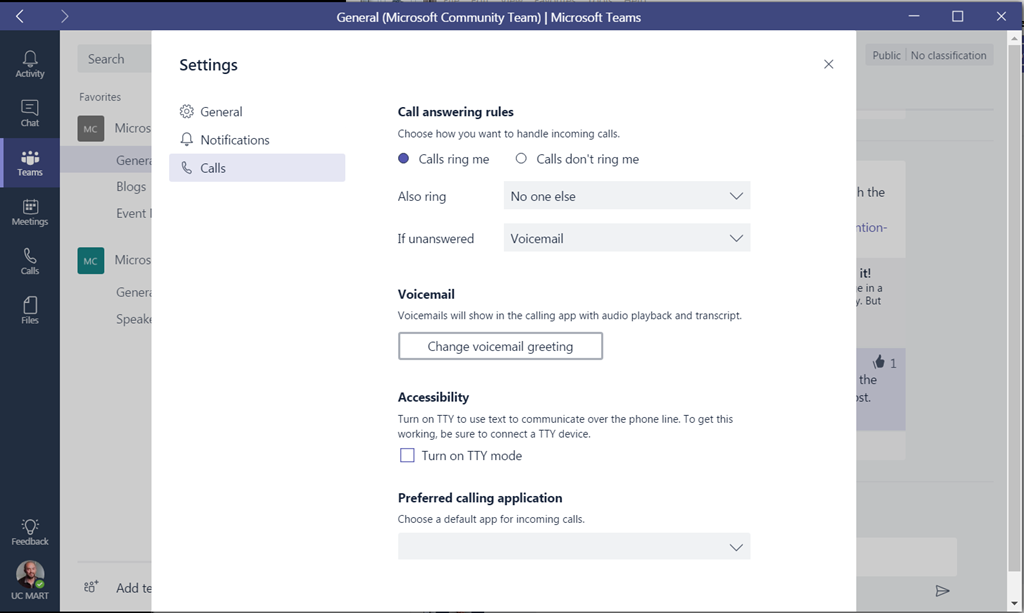 Configuring Teams to allow users to change their preferred calling experience